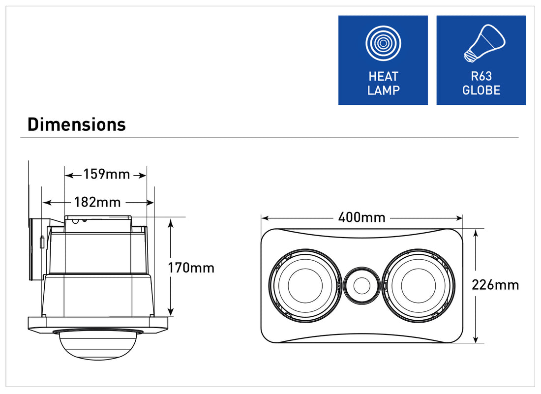 - Wall controller with 3 switches included for separate heat, light, and fan control
